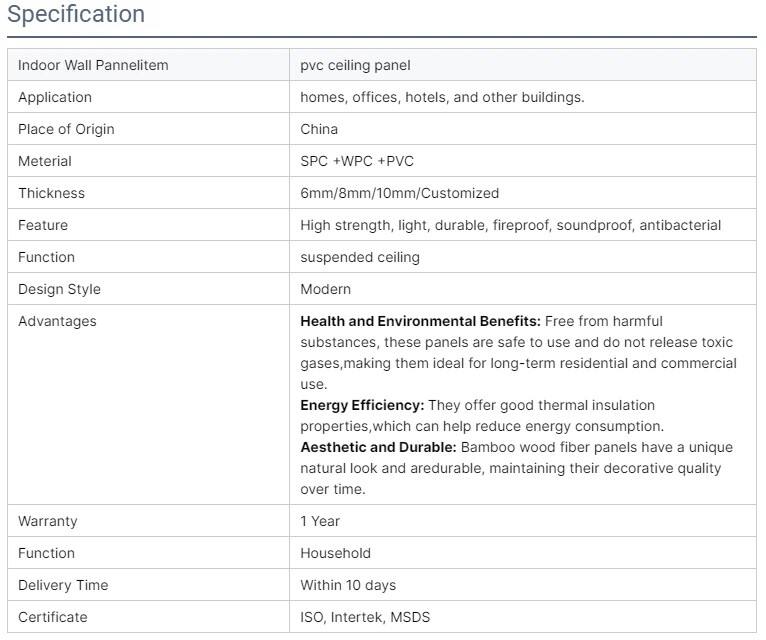 Combining practicality and affordability, this ceiling panel features moisture resistance, corrosion resistance, and easy installation—solving issues like mold growth or deformation of traditional ceiling materials (e.g., wood, gypsum). It is lightweight, low-maintenance, and available in diverse textures/colors, suitable for both residential and commercial ceiling decoration.