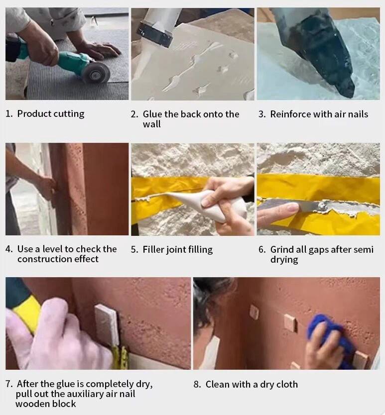 Installation: Apply specialized wall adhesive to the panel back; press firmly against the wall for 5-10min; leave 1-2mm expansion gaps between panels.