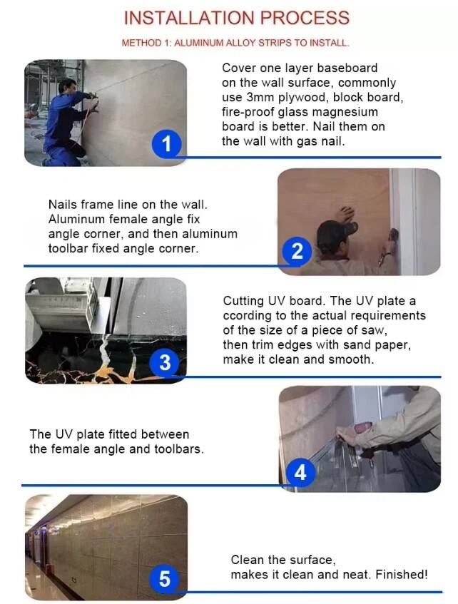 UV board can be used in many places in our daily life, such as indoor decorate, office space,reception area, service loactions and so on. You can use it anythere you want.